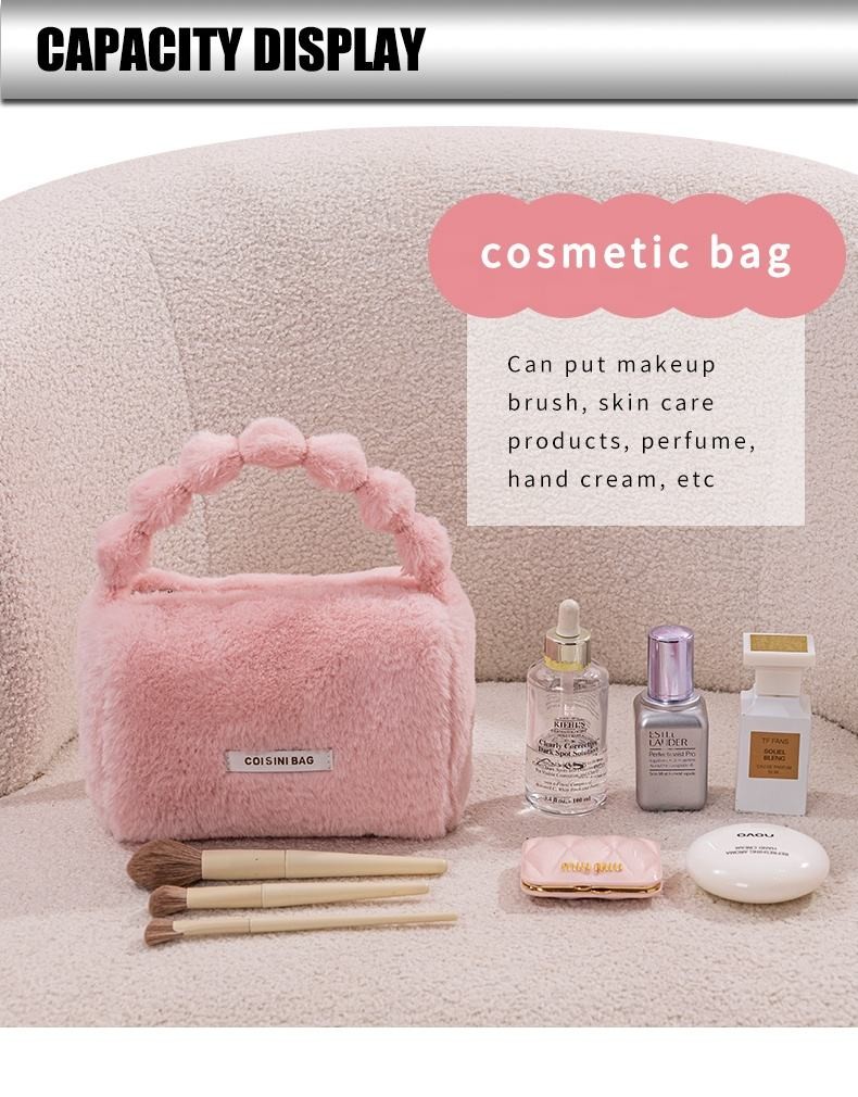 Custom acceptable New arrival Travel makeup bag cosmetic storage bag furry hand bags